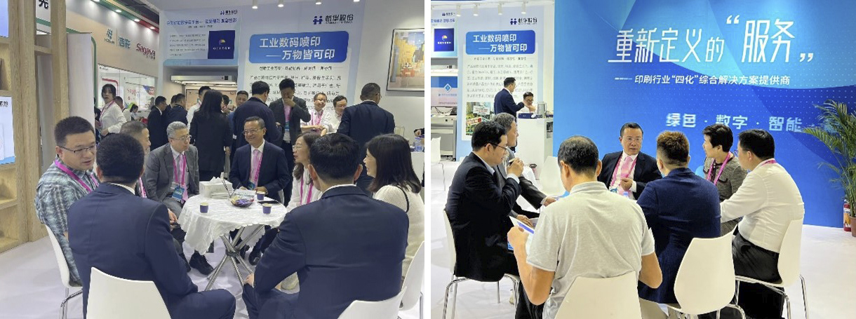 本屆展會(huì)杭華股份強(qiáng)大的新產(chǎn)品和技術(shù)陣容齊齊亮相,現(xiàn)場(chǎng)人潮涌動(dòng)、熱鬧非凡,引來行業(yè)各方人士駐足參觀。其中有高生物基LED-UV固化產(chǎn)品、商務(wù)輪轉(zhuǎn)LED-UV固化產(chǎn)品、無礦物油油墨、EB油墨、工業(yè)數(shù)碼噴印產(chǎn)品及全新色彩標(biāo)準(zhǔn)數(shù)字云平臺(tái)等,助力印刷客戶提高生產(chǎn)效率,以更“綠色化、數(shù)字化、智能化、融合化”的方式,加快實(shí)現(xiàn)印刷業(yè)數(shù)字化轉(zhuǎn)型。