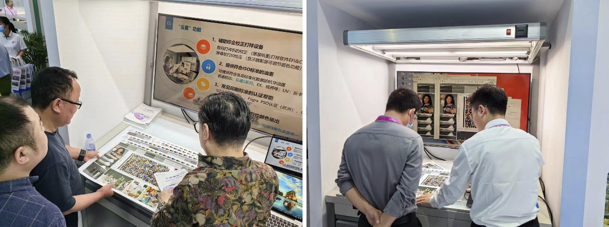 云易臻彩是杭華股份旗下一家專注于印刷流程色彩解決方案的創(chuàng)新型高科技公司,首次把印刷標(biāo)準(zhǔn)樣臺(tái)亮相展會(huì),就吸引了大量觀眾眼球,大家紛紛走進(jìn)數(shù)字云展臺(tái),體驗(yàn)了一場(chǎng)精彩絕倫的創(chuàng)新印刷之旅。